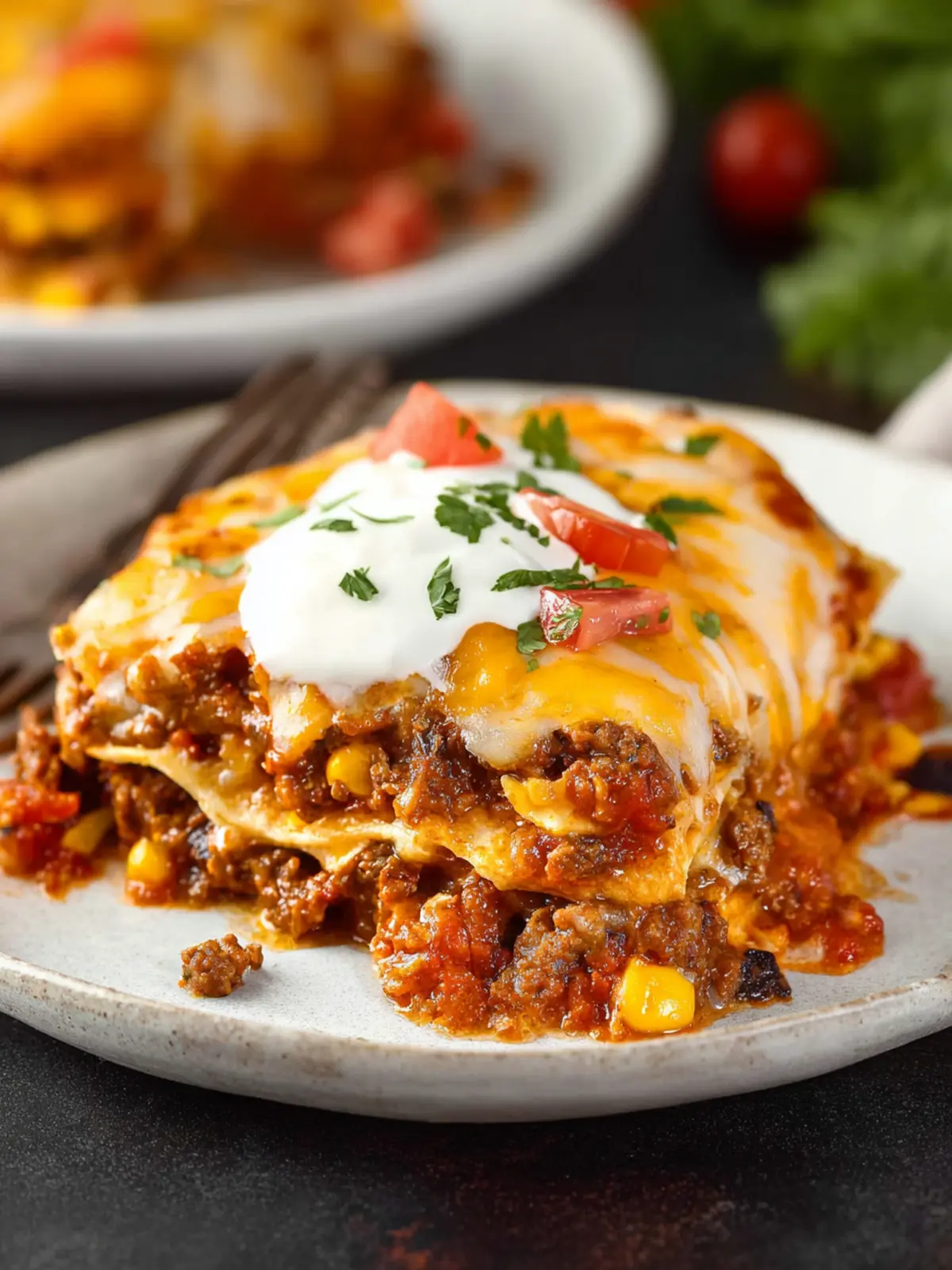 Simplicity in Assembly: With minimal prep work, you can layer your ingredients swiftly. No need for rolling tortillas or assembling each enchilada individually. Just layer your beef mixture, tortillas, and cheese in a baking dish, and you’re set!