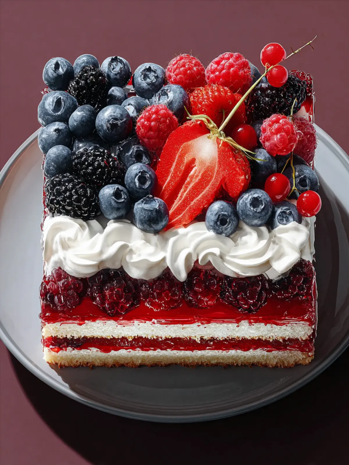 Each slice is packed with around 45 grams of carbohydrates, primarily from the cake base and the sweet berries. These carbs provide instant energy, perfect for summer festivities.