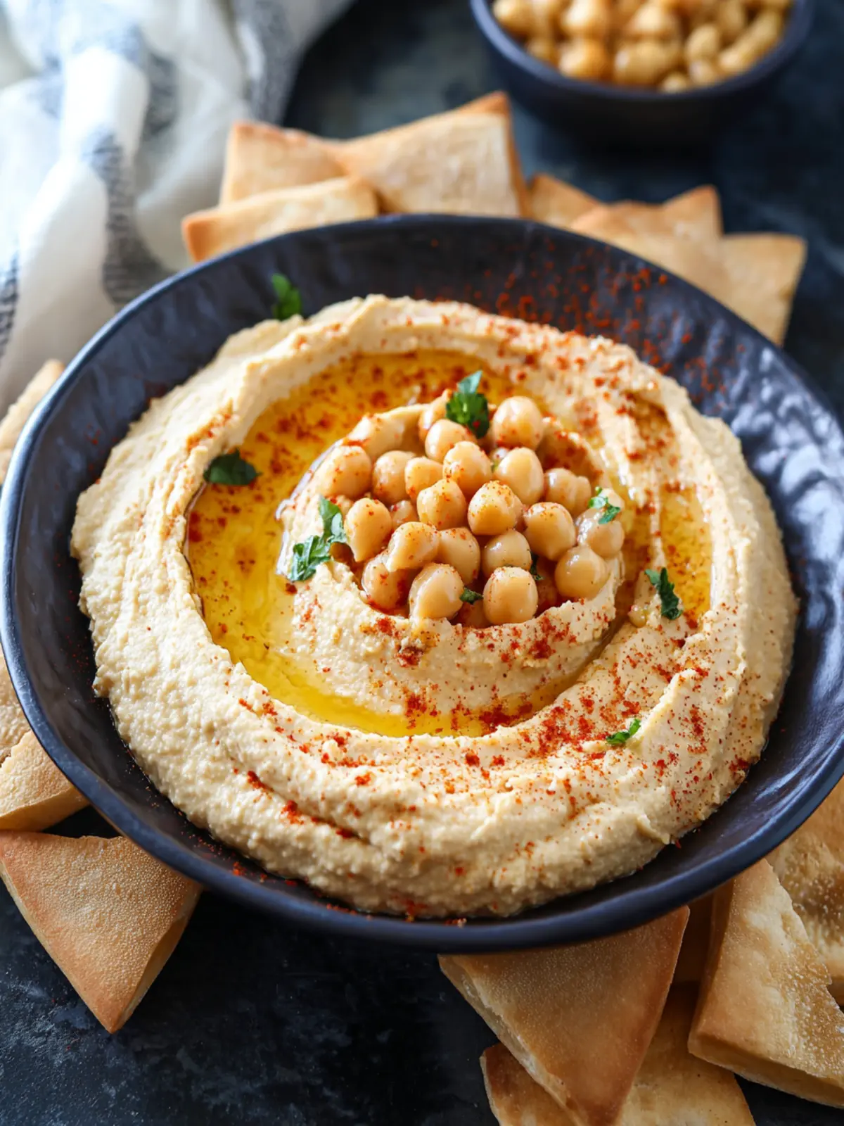 A creamy and flavorful garbanzo bean hummus perfect for dipping or spreading.