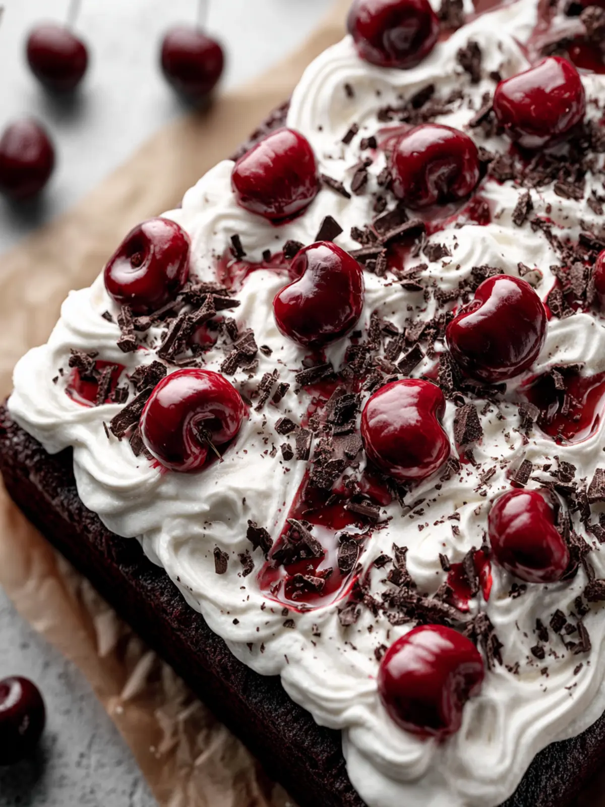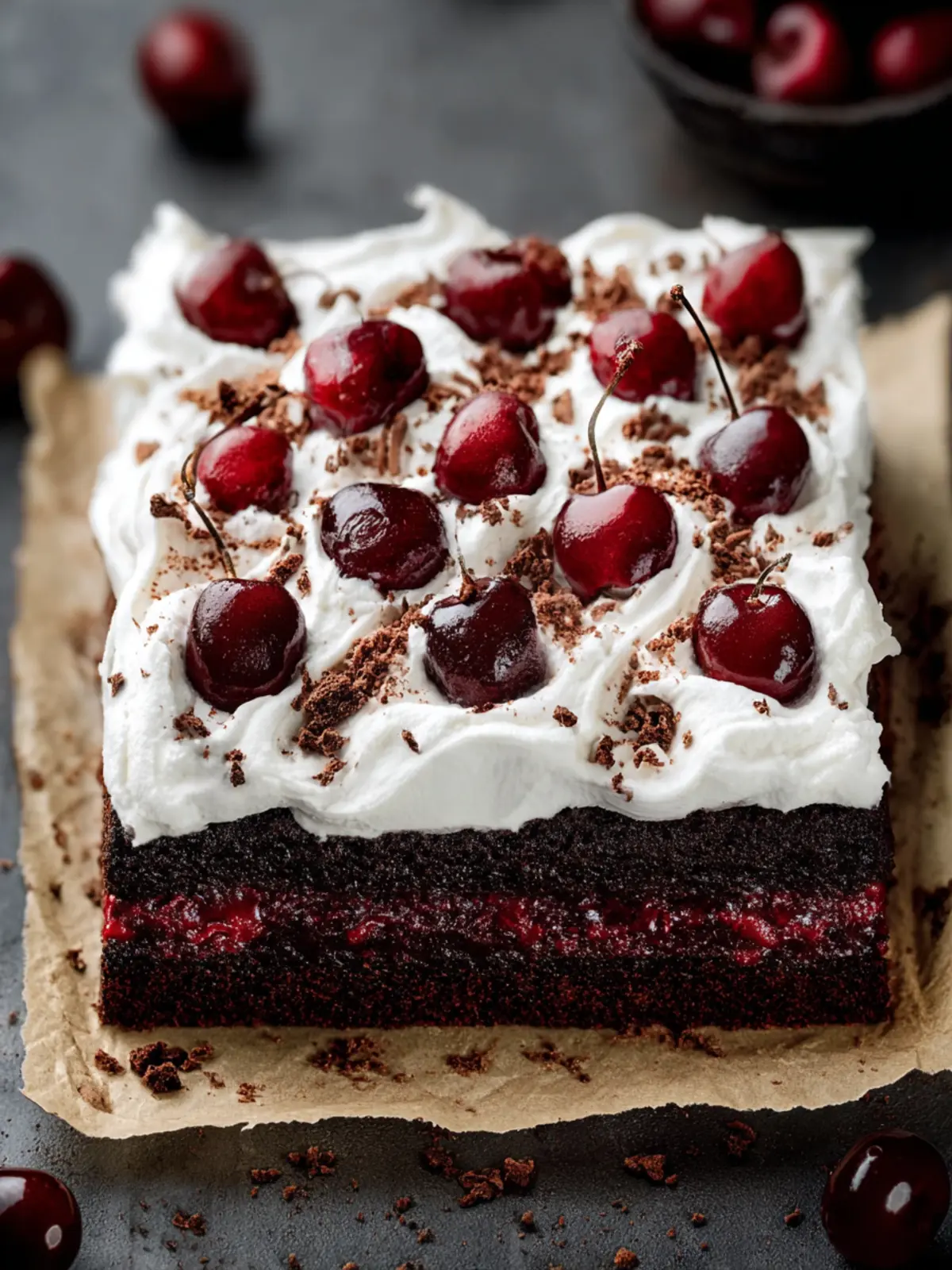 • Versatile: You can easily customize your Black Forest Sheet Cake by adjusting the toppings or adding extra layers of flavor, like dark chocolate shavings or a drizzle of cherry syrup.