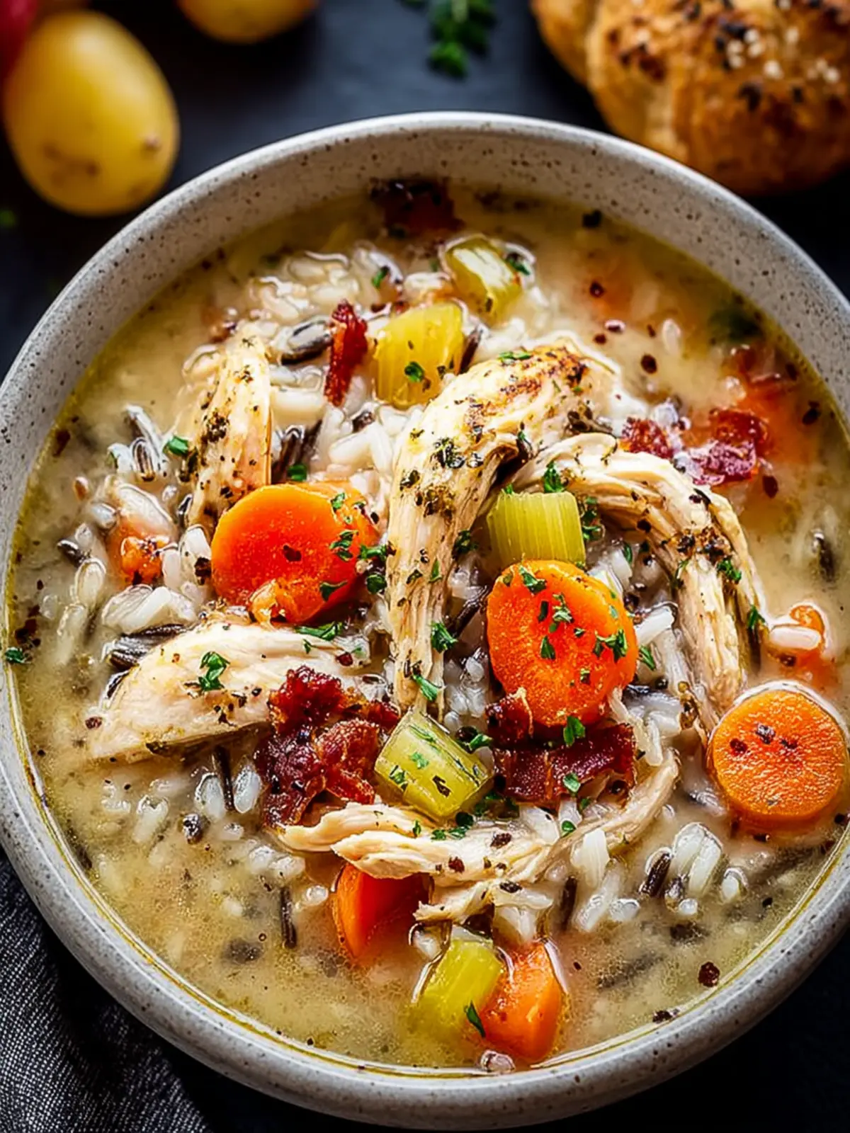 Imagine the harmony of perfectly cooked chicken, earthy wild rice, and a medley of vegetables mingling in a rich, flavorful broth. Each ingredient plays a vital role in this culinary symphony: