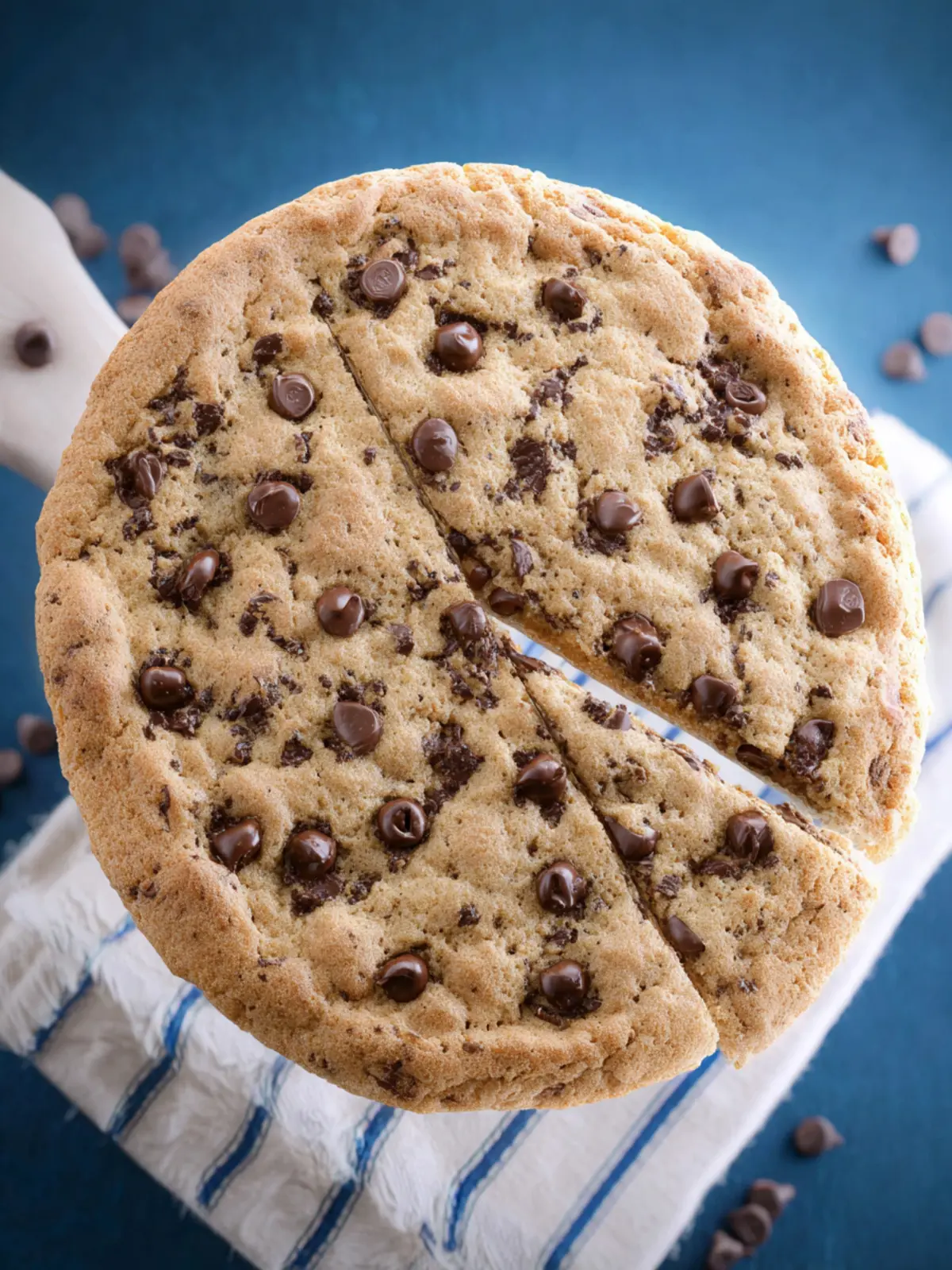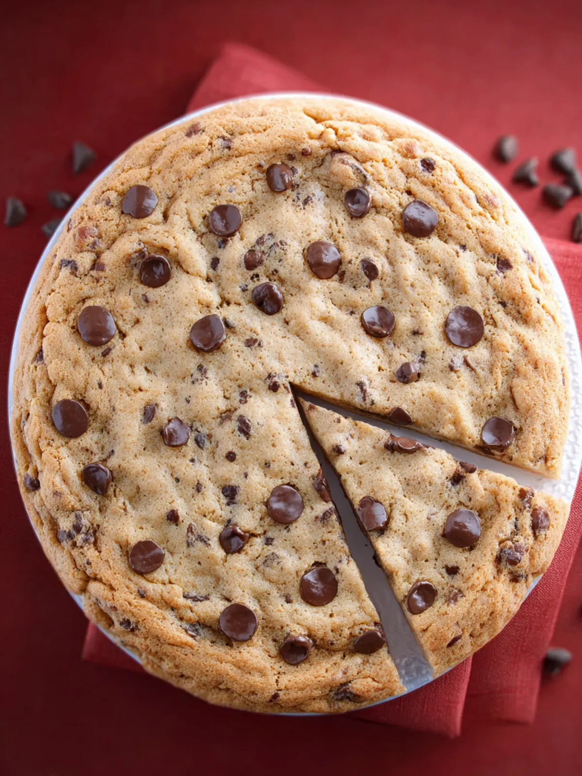 This delicious chocolate chip cookie is baked in a single large cookie format that is soft, chewy, and perfect for sharing!