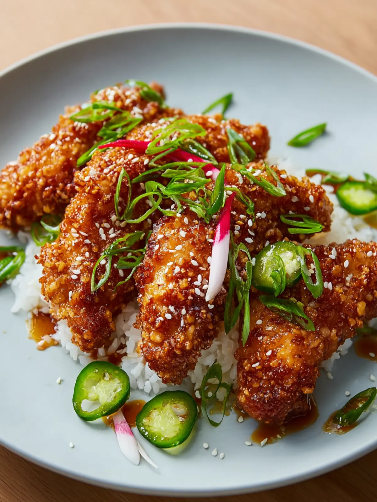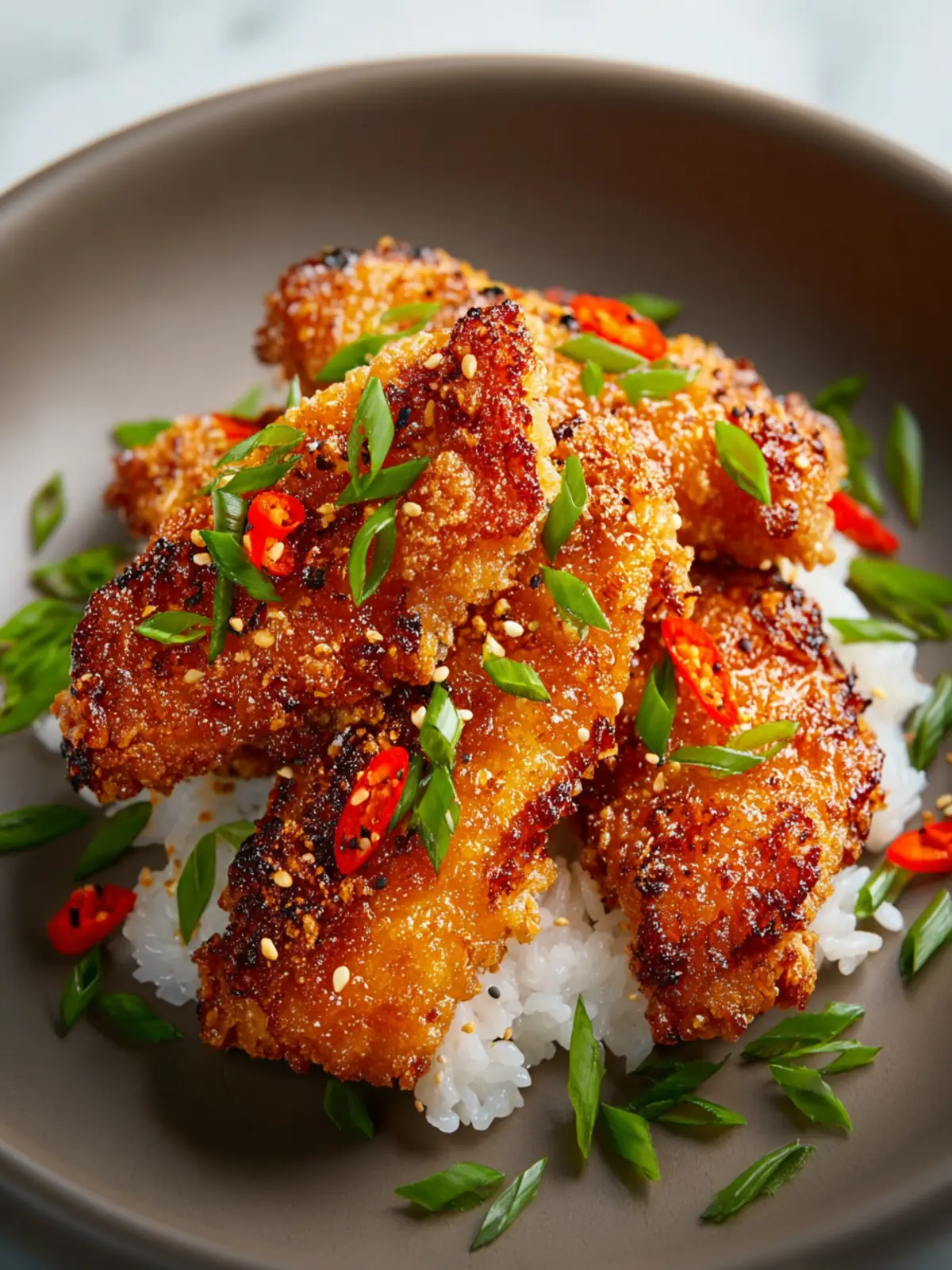 Crispy Coating: Thanks to the Mochiko flour, which is a sweet rice flour, the chicken’s coating is both crispy and light. This unique texture sets it apart from traditional fried chicken, giving it an irresistible crunch.