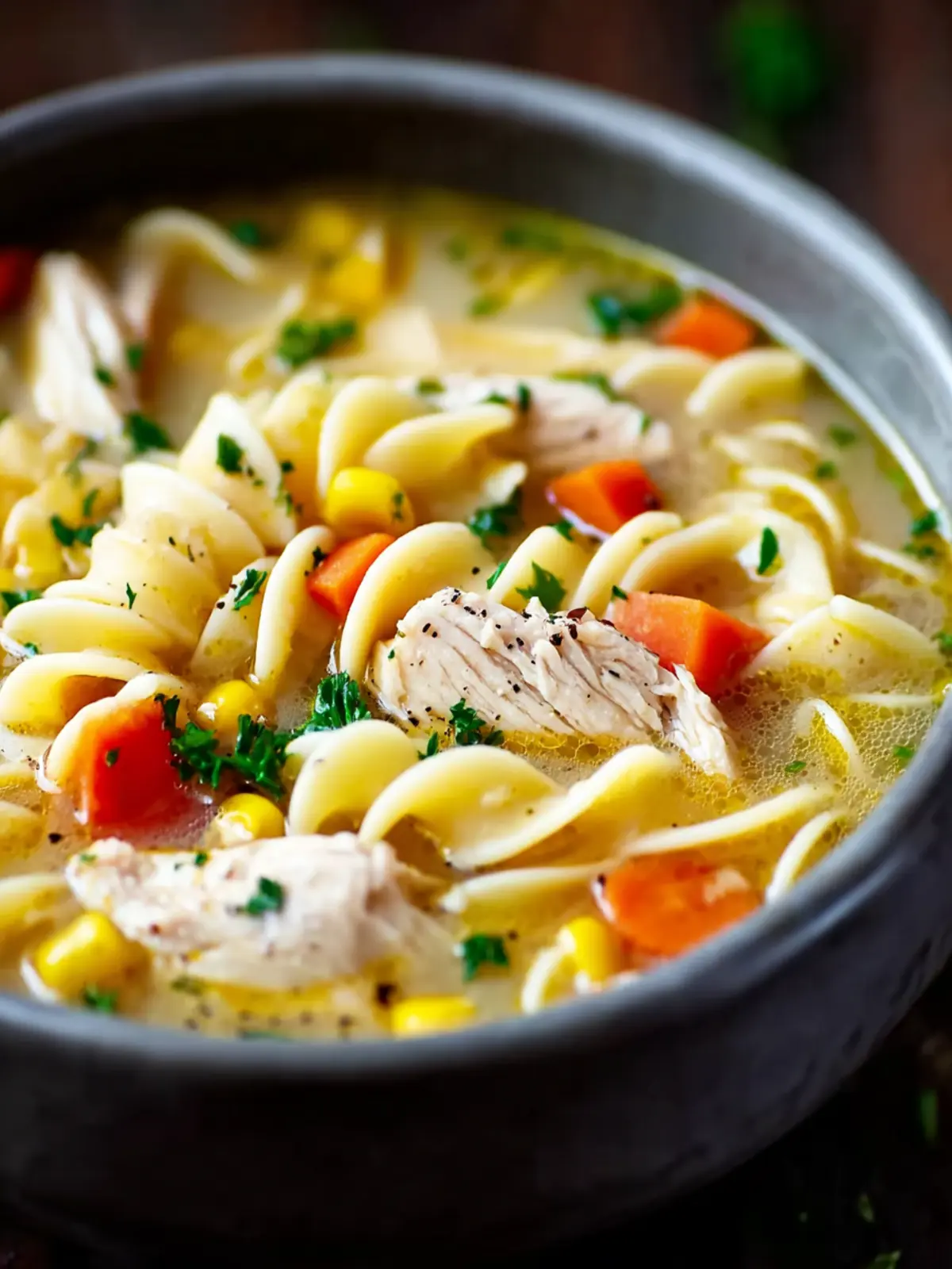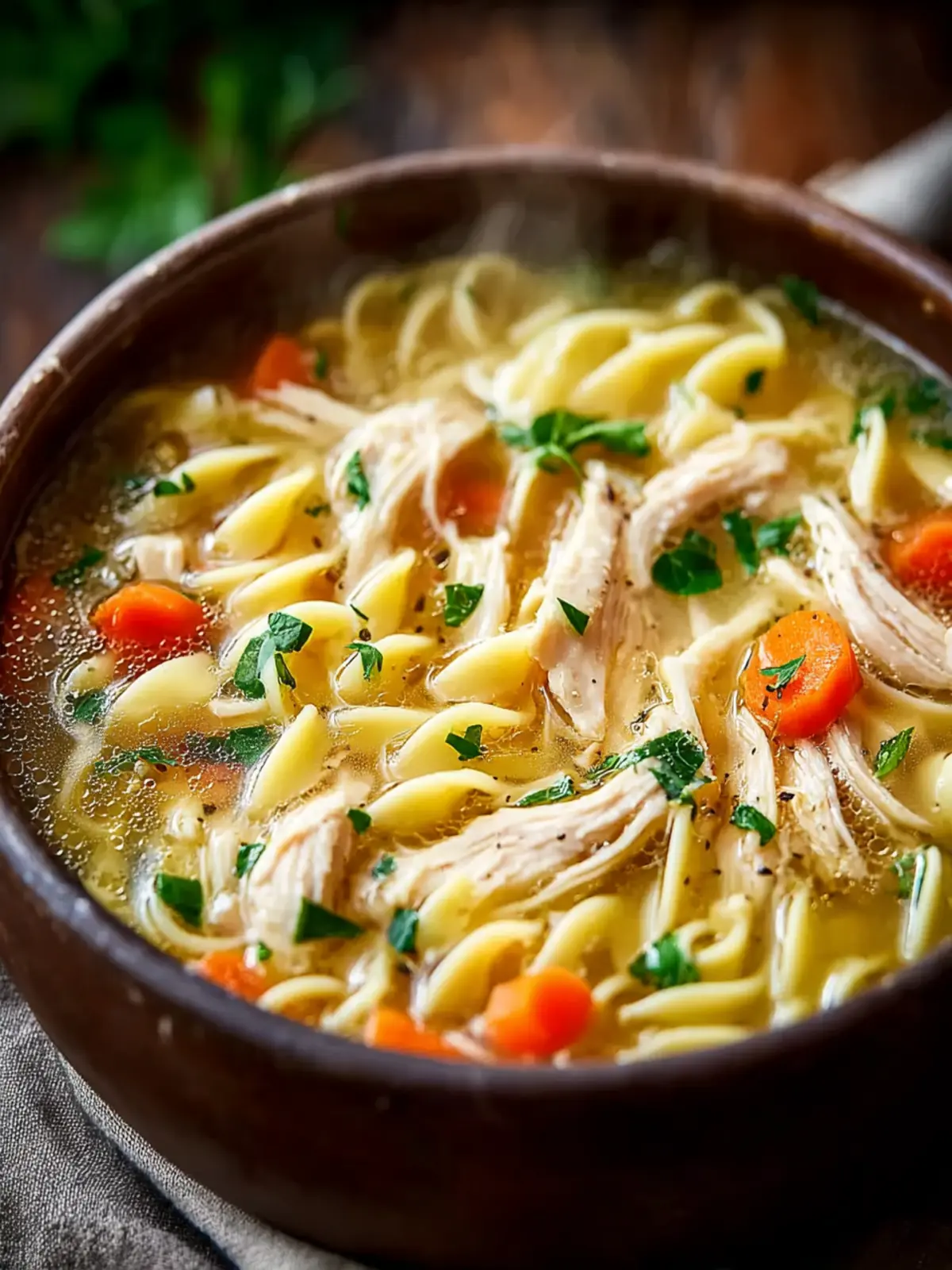 This recipe brings together a blend of tender chicken, fresh vegetables, and perfectly cooked noodles, creating a symphony of flavors that dance on your palate. Imagine the creamy broth infused with herbs like thyme and parsley, which not only elevate the taste but also evoke nostalgia with every bite.