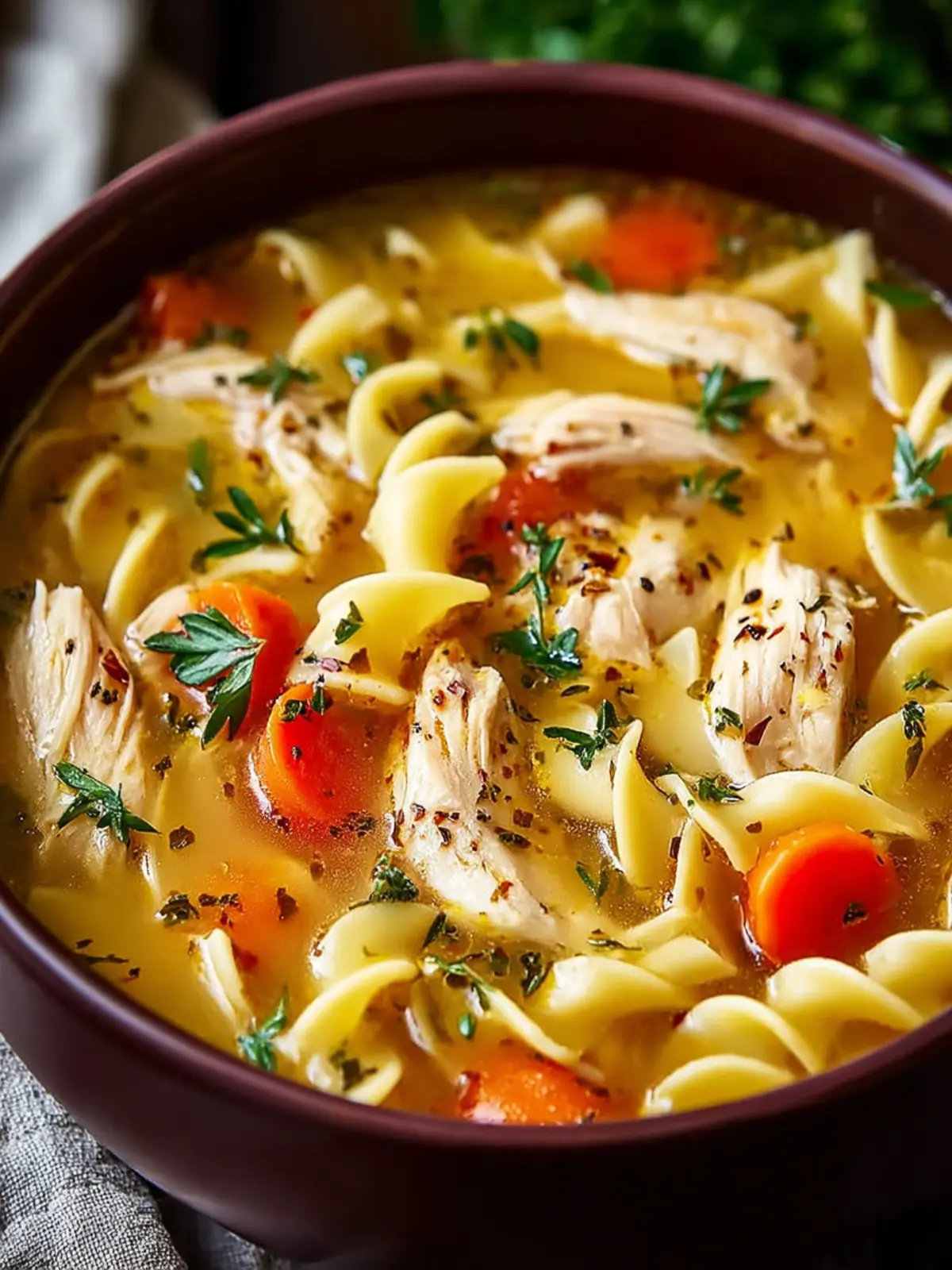 Warm and comforting, this classic chicken noodle soup is perfect for any occasion.