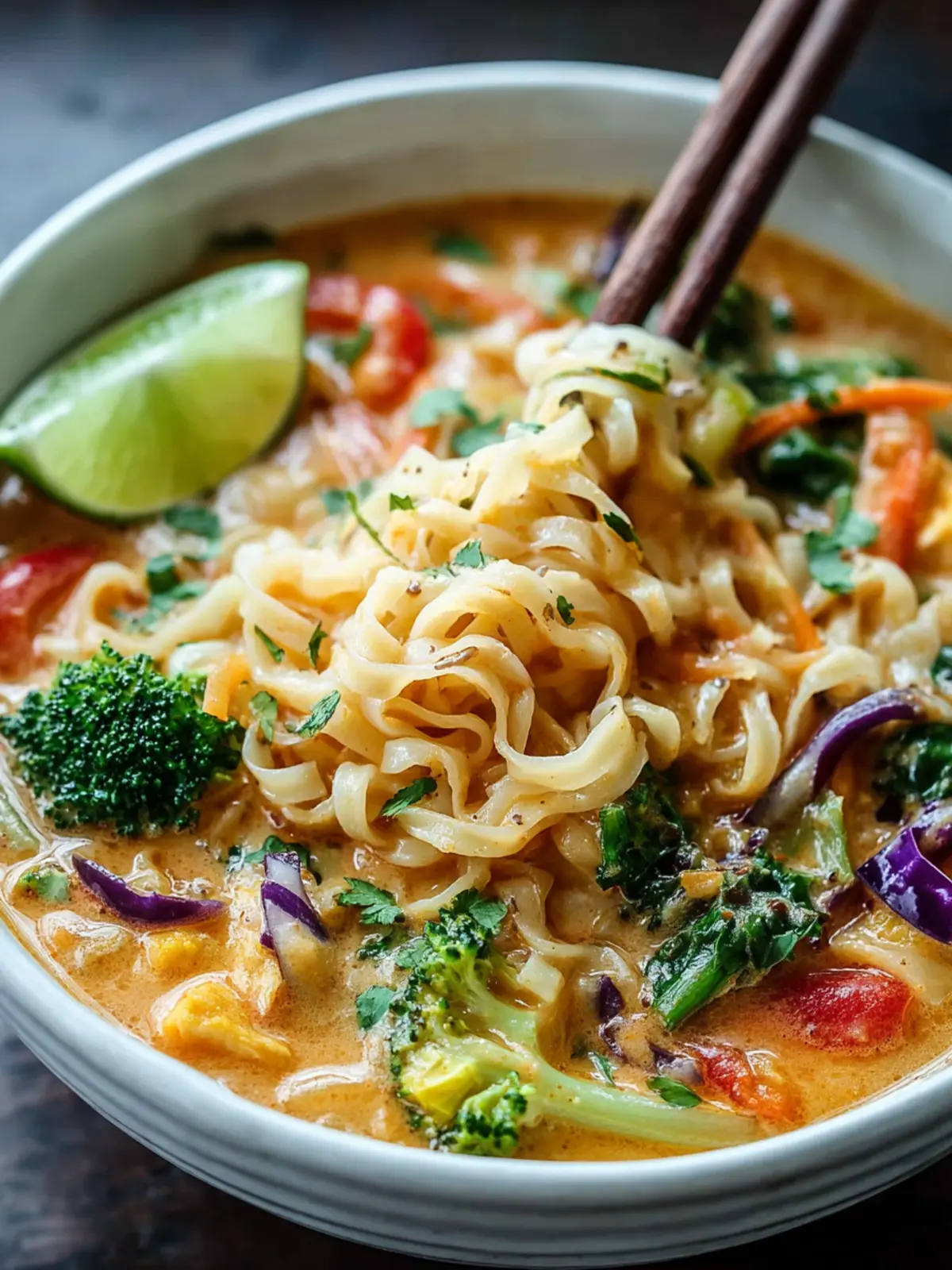 Toppings Galore: Top your noodle bowl with fresh herbs like cilantro or basil for a burst of flavor. A squeeze of lime adds a zesty kick that perfectly complements the creamy coconut curry.