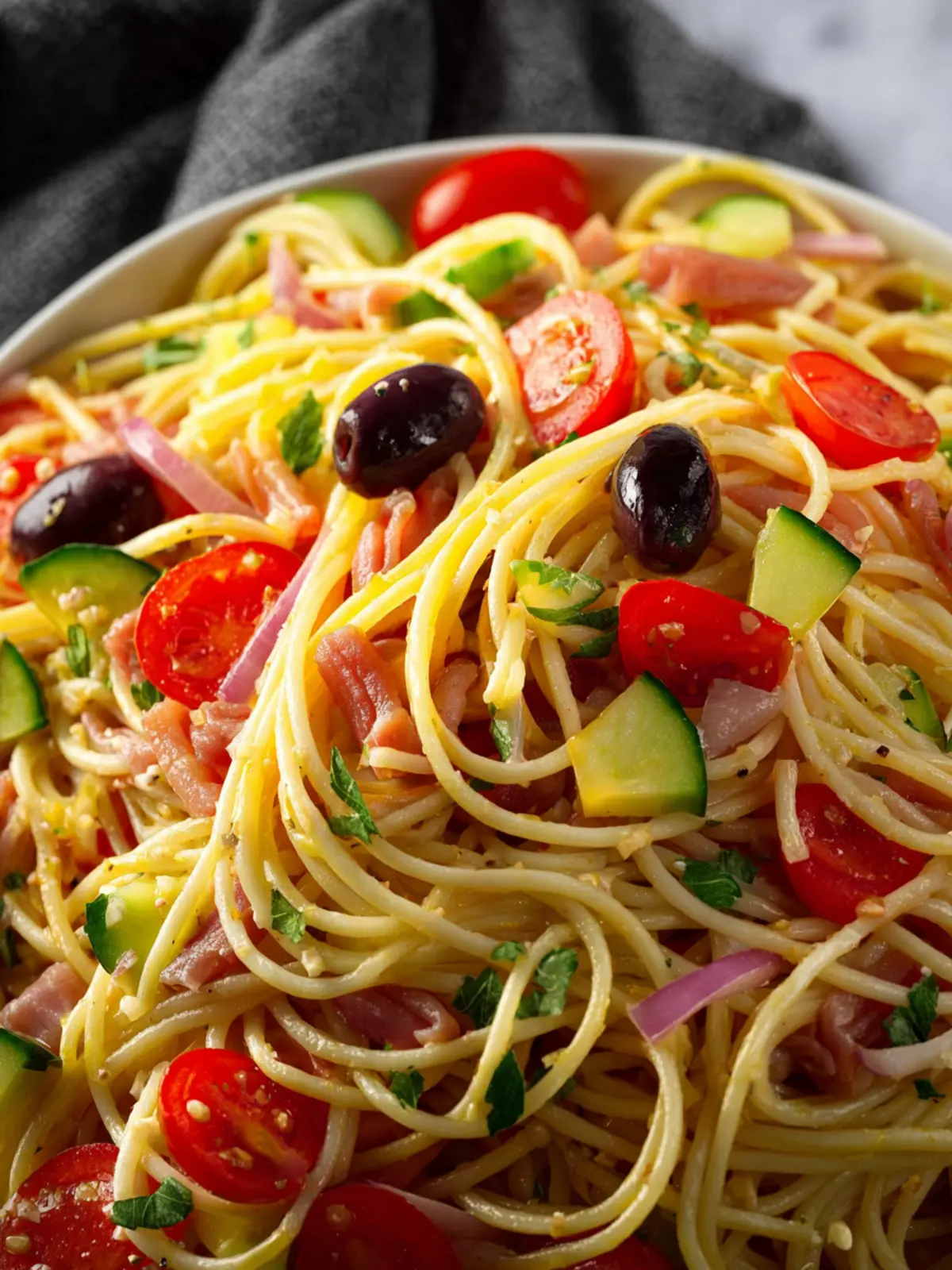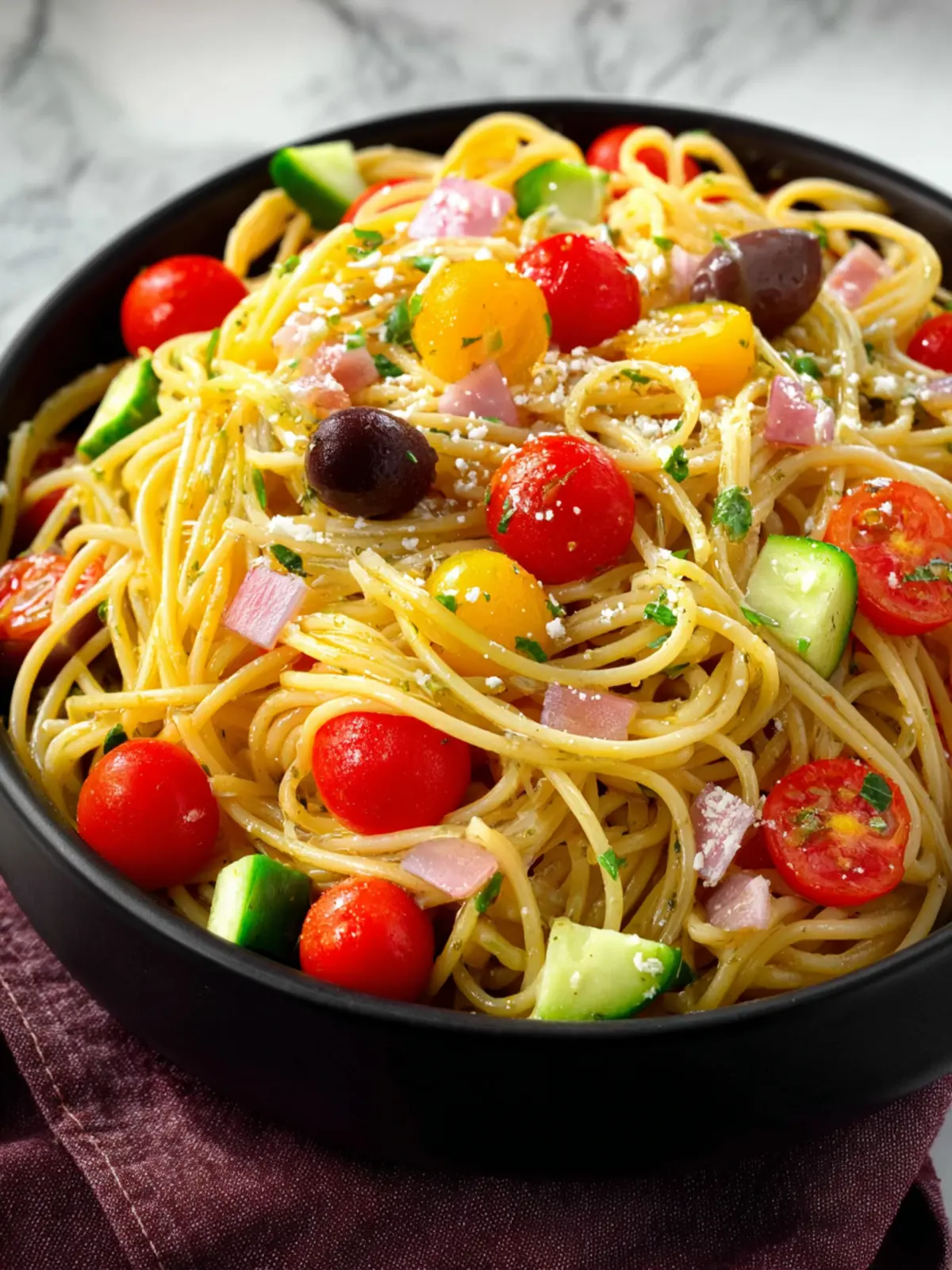 A delicious and refreshing spaghetti salad perfect for summer gatherings.