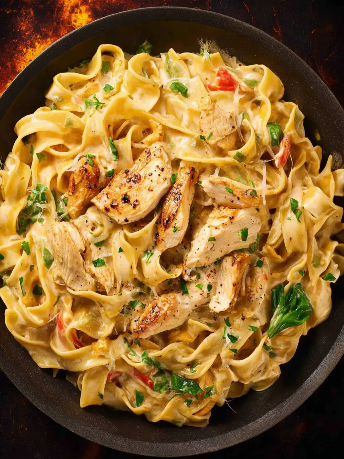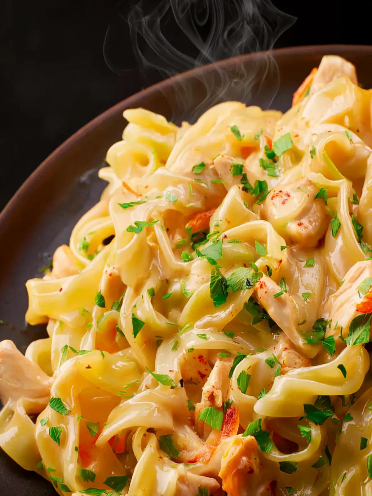 To make your meal pop, serve the chicken and noodles in shallow bowls, garnished with chopped parsley or fresh herbs. A sprinkle of red pepper flakes can add a dash of color while introducing a hint of spice.
