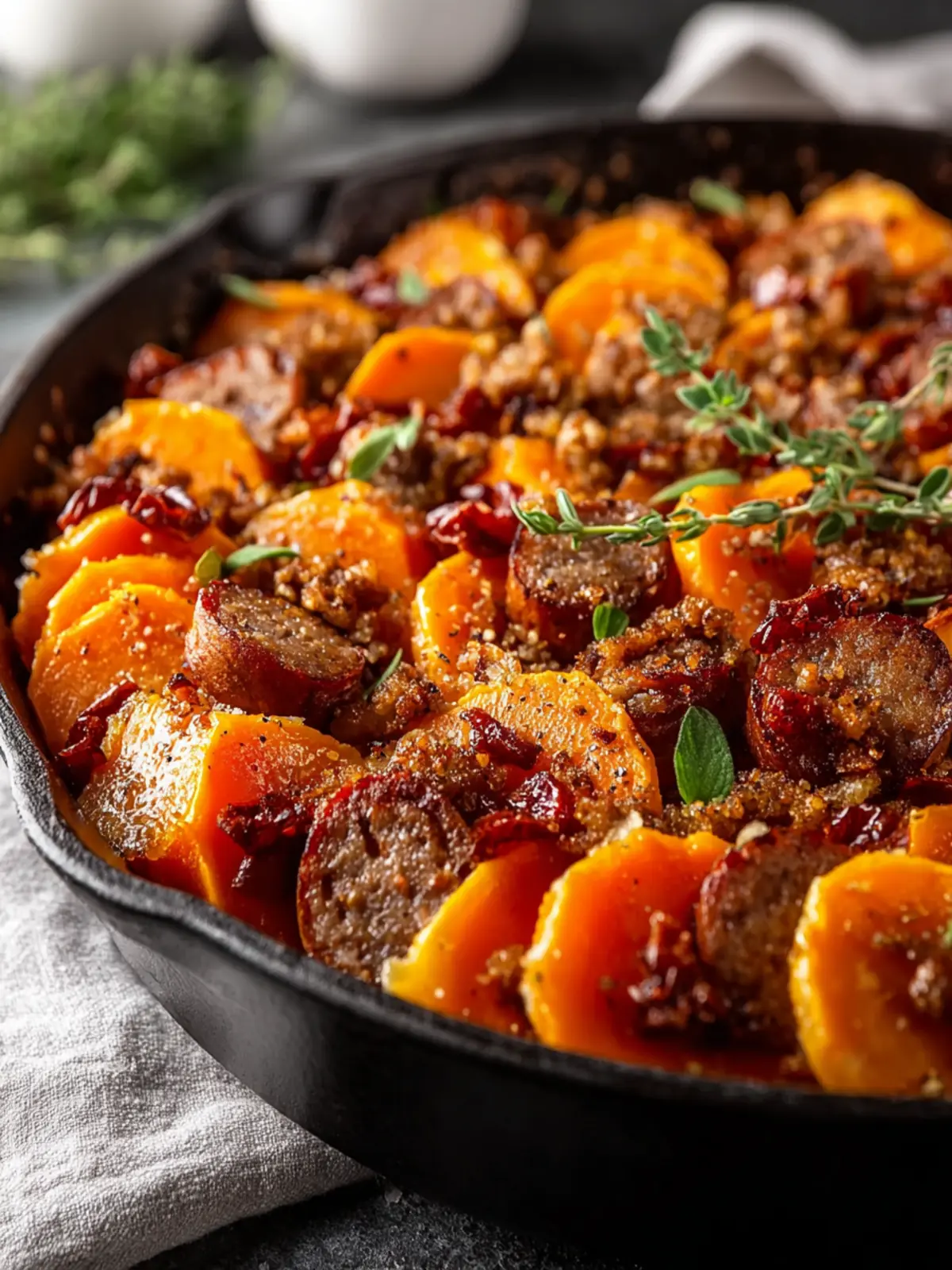 This Sweet Potato and Sausage Casserole is a hearty and comforting dish, perfect for family gatherings or special occasions.