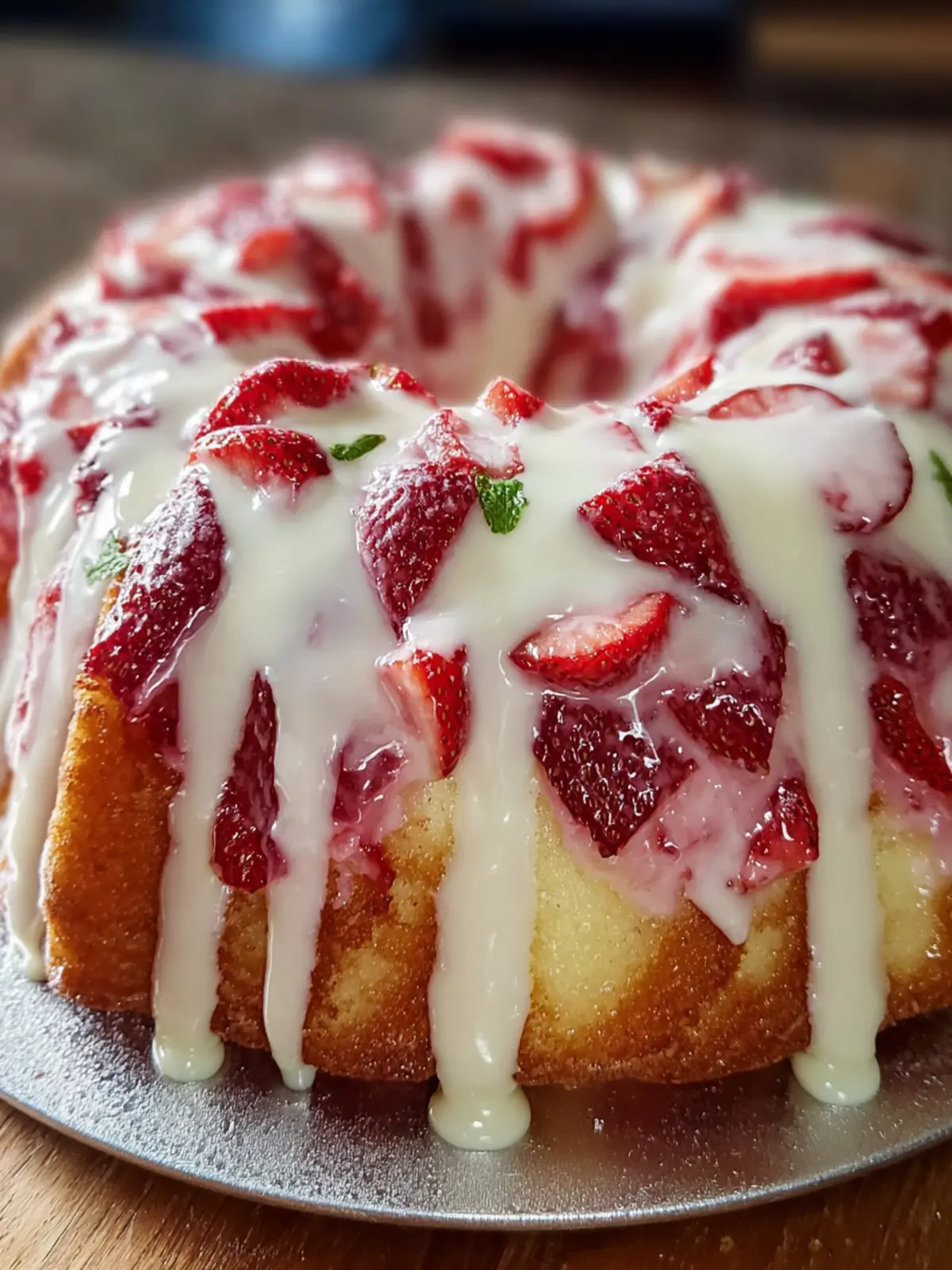 This Vanilla Strawberry Bundt Cake Delight is a deliciously moist cake that combines the flavors of vanilla and fresh strawberries, perfect for any occasion.